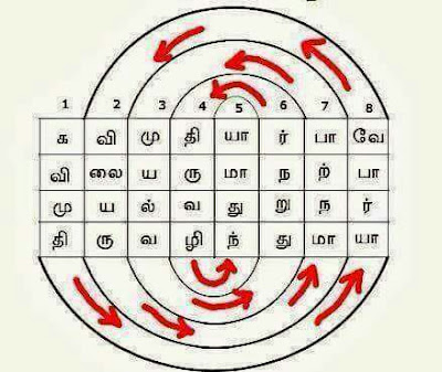 இதை முதலிருந்து தொடங்கி வாசித்தாலும், இறுதியிலிருந்து தொடங்கி வாசித்தாலும் ஒன்றுபோலவே தொடங்கி முடியும்.