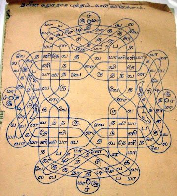 எழுத்தெண்ணிப் பாடப்பட வேண்டிய செய்யுள் இது. சித்திரத்தில் அமைந்திருக்கும் எழுத்துக்கள் – 72. செய்யுளில் அமைந்திருப்பவை – 83.