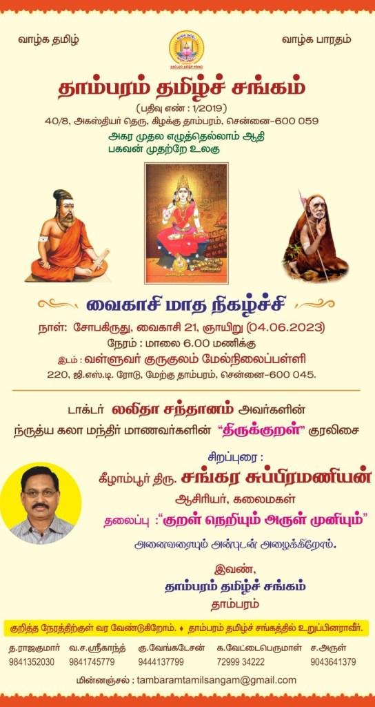நமது முன்னோரை அவர்களது நினைவிற்குரிய திருநாட்களில் நினைவுகூர்வதும் வணங்கி மகிழ்வதும் மரபு. அந்த அடிப்படையில், வைகாசி விசாகமான இன்று திருவள்ளுவரைப் போற்றி மகிழ்கிறோம். இந்நாளில் வைகாசி அனுஷமே திருவள்ளுவர் நாள் என்று, 1931-இல் கூடி உறுதி செய்த தமிழ்ச் சான்றோர் பெருமக்களுக்கு நன்றி கூறுகிறோம்.