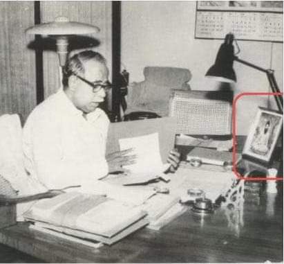 திமுக நிறுவனர்களில் ஒருவரும், ‘ஒன்றே கோயில் ஒருவனே தேவன்’ என்று (திருமூலர் சொன்னது) கூறிய திரு. சி.என்.அண்ணாதுரை முதல்வராகப் பொறுப்பு வகித்தபோது, அவரது மேசையில் தமிழறிஞர்களால் ஏற்றுக் கொள்ளப்பட்ட திருவள்ளுவரின் திருநீறணிந்த புகைப்படமே இருந்தது. இதனை பிறகு மாற்ற வேண்டிய அவசியம் என்ன வந்தது?