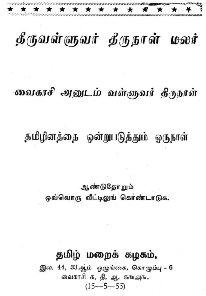 திருவள்ளுவர் பிறந்த நாளை திருப்பூர் அறம் அறக்கட்டளை அண்மையில் ‘வைகாசி அனுஷம்’ தினத்தில் கொண்டாடியது. அந்த அமைப்பின் செயலாளர் திரு. சு.சத்தியநாராயணன், அதற்கான காரணத்தை விளக்கி எழுதிய கட்டுரை இது…