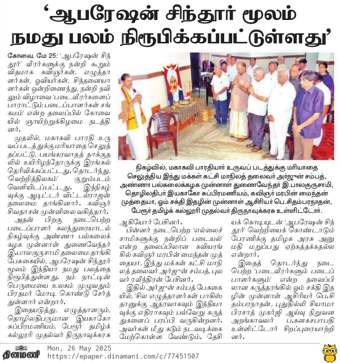 தினமலர் (25.05.2025) முன்கூட்டிய செய்தி…