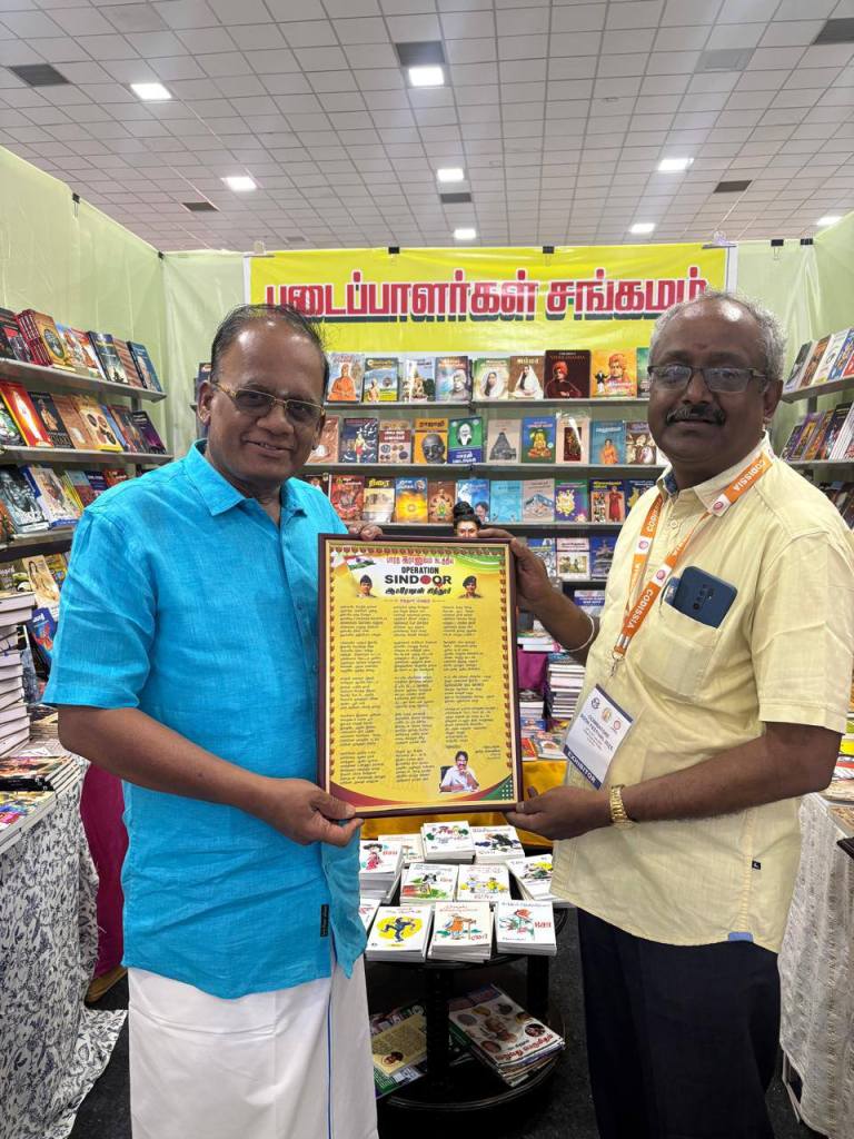 ஆபரேஷன் சிந்தூர் குறித்த கவிஞர் அரங்க சுப்பிரமணியம் அவர்களின் கவிதை மடலை வழங்குகிறார் பேரா. விஜயராகவன்.