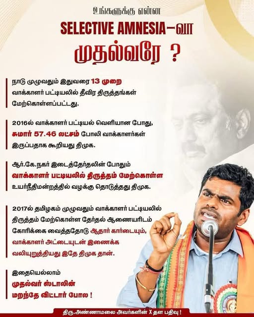 இந்திய தேர்தல் ஆணையம் வாக்காளர் பட்டியல் சிறப்புத் திருத்தத்தை தமிழ்நாட்டில் நடத்தத் தொடங்கி இருக்கிறது. இதற்கு சில அரசியல் கட்சிகள் எதிர்ப்பு தெரிவிக்கின்றன. ஆயினும் இது காலத்தின் தேவையாக உள்ளது. இது தொடர்பான கட்டுரைகள் நமது தளத்தில் வெளியாகும். இது கட்டுரை- 1; பத்திரிகையாளர் திரு. துக்ளக் சத்யாவின் முகநூல் பதிவு நன்றியுடன் இங்கு மீள்பதிவாகிறது...