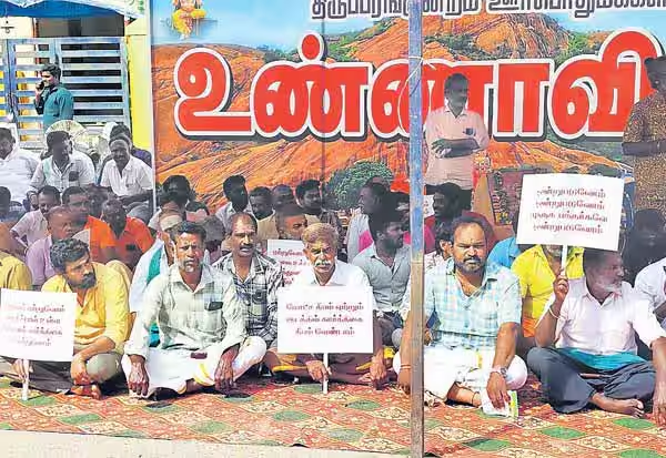 தீபத்தூணில் தீபம் ஏற்றக் கோரி, உள்ளூர் மக்கள் உண்ணாவிரதம்